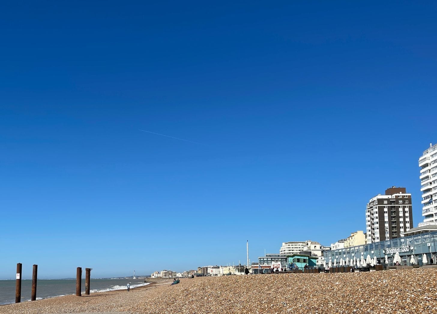 The promenade is rarely empty of dog walkers and joggers but few wander onto the shingle before Easter time. Soon though, the cafes will be full again, umbrellas open, music playing, hot salt and vinegar chips scenting the air. Day trippers and early tourists will reassure these businesses that they might make it through another year. Visitors will scatter across the shore, bags packed with towels and snacks, scanning the beach for a spot to settle for a few hours.